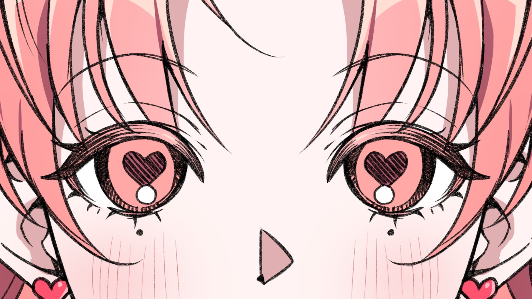 평소에는 눈이 반짝거리듯 묘사되며 개성에 걸리거나 쓸 때마다 선명한 하트동공으로 바뀐다.