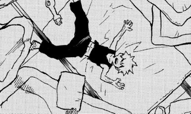 아무리 히어로 지망생이라곤 하지만 16살 소년이 빌런에게, 그것도 손만 닿으면 붕괴시켜버리는 빌런에게 납치당했는데 겁먹지 않을리가 있나요? 바쿠고의 저 표정에서 안심, 두려움, 동경 이것저것의 감정이 느껴져서 좋아하는 장면 입니다.